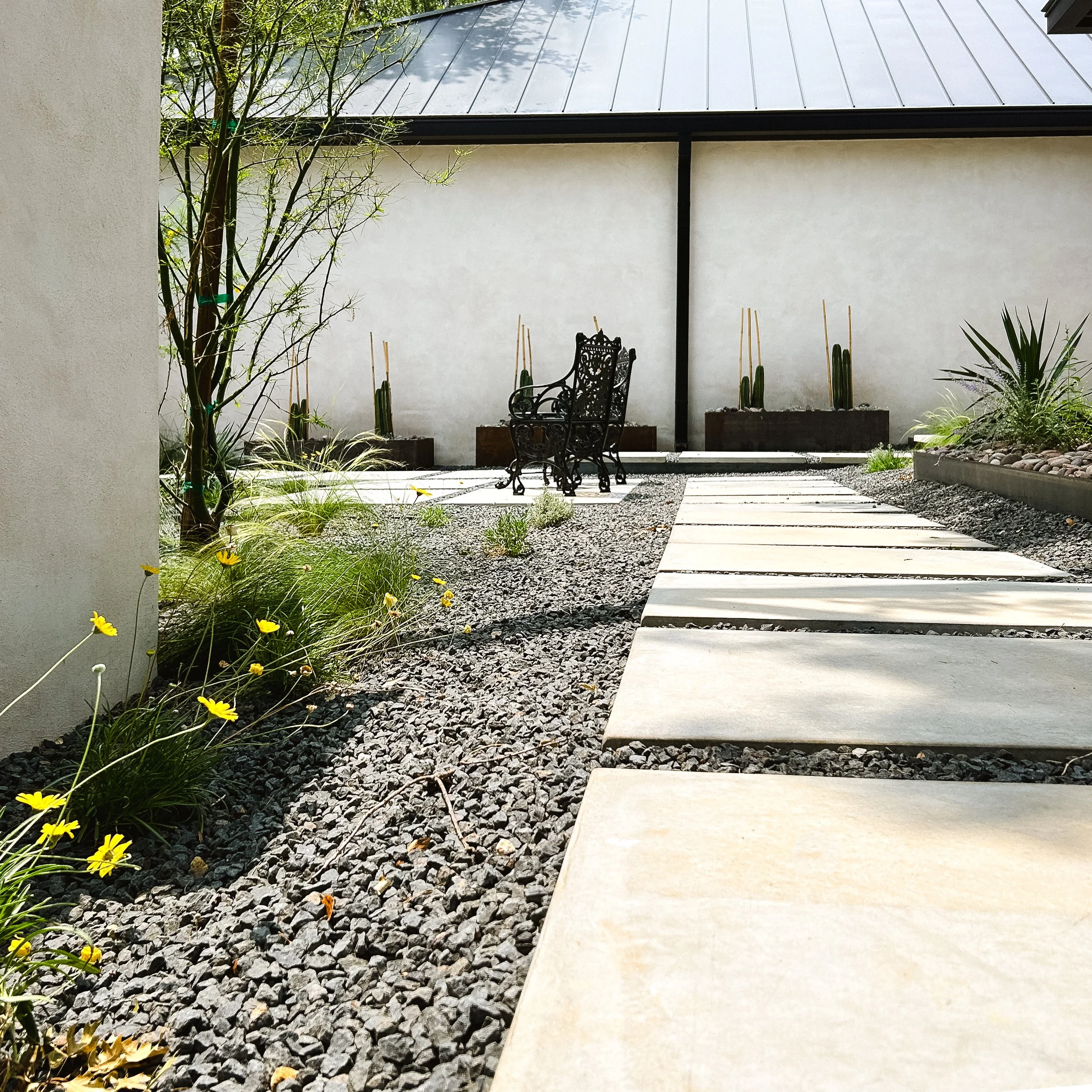 This project included a full renovation both in and outside of the house. Our focus was to use the existing outdoor features and give them new life to match the interior and exterior renovations. The result is a lush, textured garden that can handle both bright & hot and deeply shaded areas.